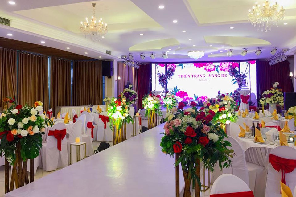 Sảnh Sakura 70 chỗ ngồi được trang bị hệ thống màn hình led sắc nét và hệ thống âm thanh chất lượng cao